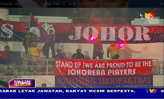 megah dengan bendera JOHOR masa perlawanan akhir. Pasukan yang ayah, pakcik –